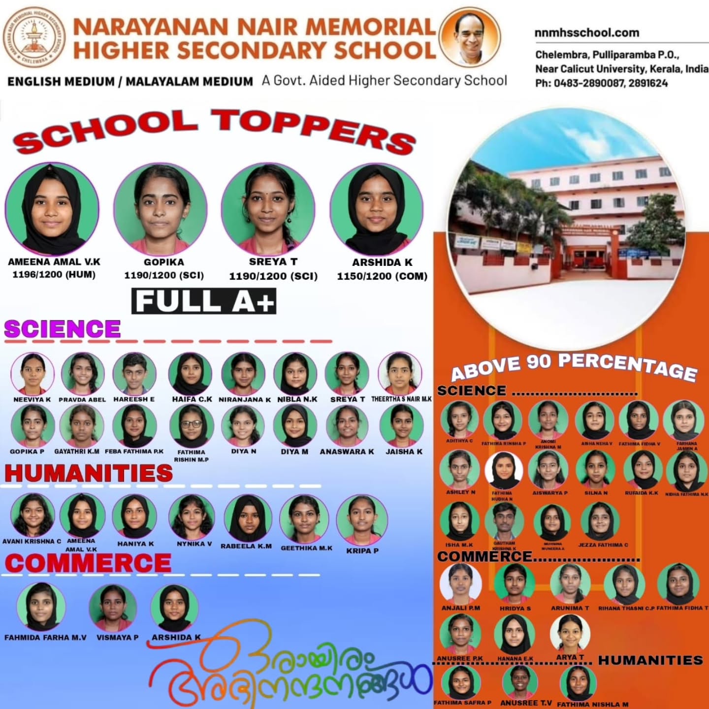 NNMHSS is a Govt Aided Higher Secondary School following Kerala State Syllabus.We lays much emphasis on co-curricular activities in addition to the State Syllabus so as to ensure holistic growth of the students. Students are actively involved in arts, music, cultural programs, clubs, sports and leadership activities. The platforms enhance innovation, self-confidence, team work and discipline, which allows the learners to not only perform excellently in school but also acquire vital skills in life outside the classroom.